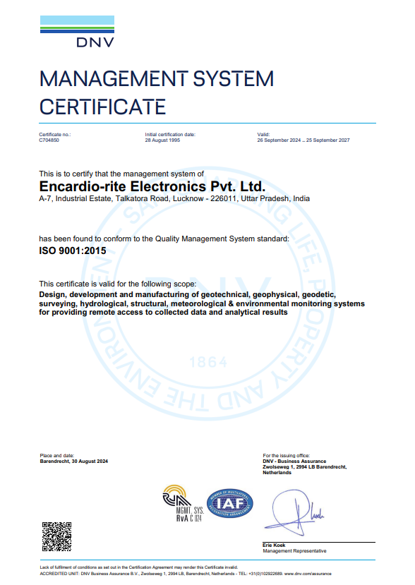 Encardio Rite is an ISO 9001:2015 accredited company that has a policy to supply high performance, well-designed, safe and reliable products at competitive prices and consistent quality to customers.